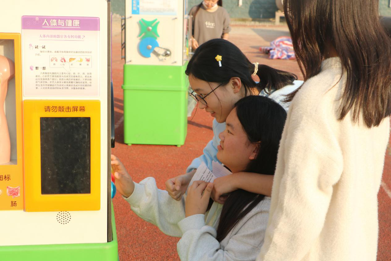 活动现场,科普讲解员用通俗易懂、生动有趣的语言,为孩子们解释科学知识,向孩子们展示了光、磁、电等方面的科学原理,众多科普展具令孩子们大开眼界,大家三五成群地围着科普展具,争先恐后地观看、了解展品的原理。
