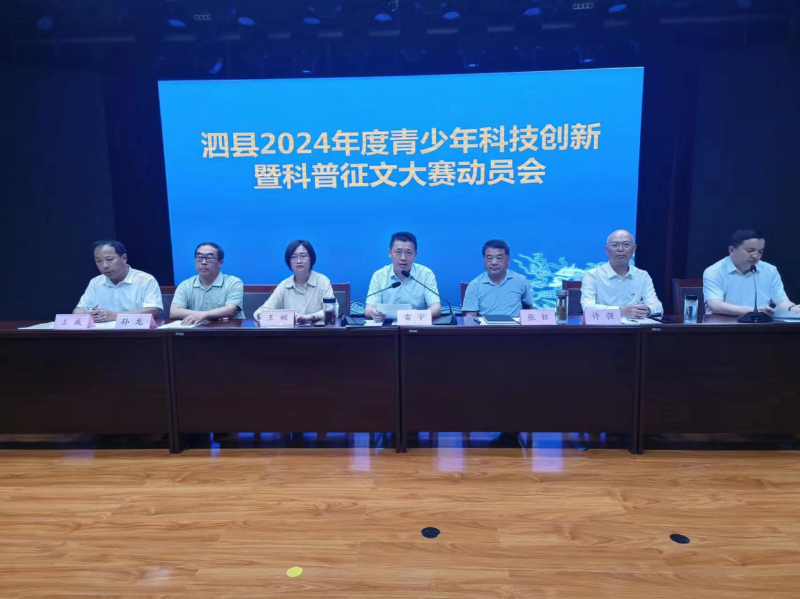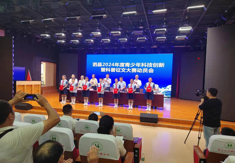 为总结表彰2023年青少年科技创新大赛工作,安排部署2024年青少年科技创新大赛和科普征文工作,近日,泗县召开了2024年青少年科技创新暨科普征文大赛动员会。县科协党组书记、主席主持会议,科协、教体局、县团委分管负责同志出席会议,各学校获奖老师、学生参加会议。