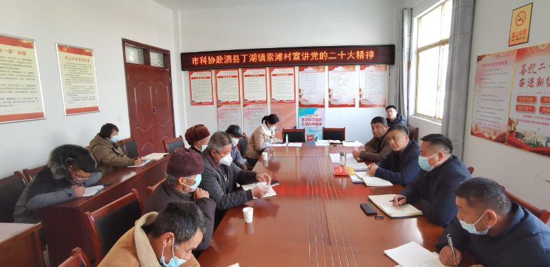 12月6日,市科协党组书记、主席朱加文赴泗县丁湖镇索滩村宣讲党的二十大精神,索滩村村“两委”成员、党员代表、群众代表等人参加了宣讲会。