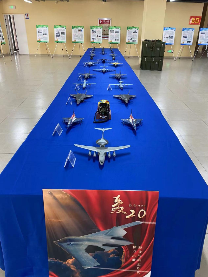 布置在该校的军事科普展区位于体育馆一楼大厅,面积近400平方米,集中展出了海军、陆军、空军、火箭军的部分现役装备模型,引得学生纷纷驻足。该展区分三个部分:人民军队、武器装备、军事科技。以图文并茂、模型展示等方式,分别展出了人民军队发展史、国防基础理论知识等;现役装备模型,有包括歼20在内的各类尖端战机、99A在内的陆军先进装甲战车、东风-41在内的核导弹、辽宁号在内的航母战斗群,以及95式步枪、50式冲锋枪、马克沁重机枪等体验装备;武器装备的原理、构造及战场应用等内容。