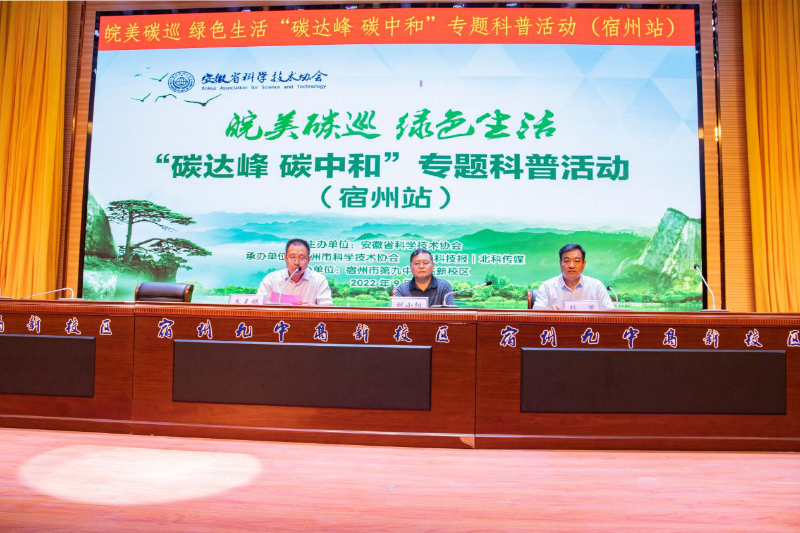 9月14日,由安徽省科协主办,宿州市科协与北京科技报丨北科传媒联合承办的“皖美碳巡 绿色生活”碳达峰、碳中和专题科普活动第十四期暨宿州专场在宿州市第九中学高新校区如期举办。宿州市科协党组成员、副主席朱克鹏出席并主持活动,宿州九中教育集团高新校区党支部书记、校长张节,宿州市科协科普部相关人员及校区300余名师生代表现场参与。