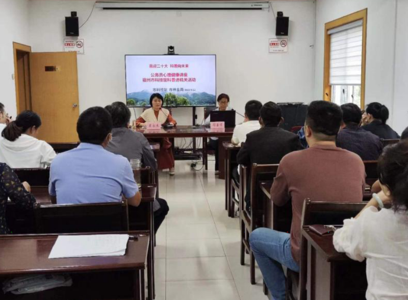 近日,市科技馆积极开展科普进机关活动,特邀中共宿州市委党校教员、安徽省心理卫生协会婚姻家庭工作专委会常委、宿州市心理健康学会理事邵玉芹,到市林业局开展“心理压力与压力管理”专题讲座。