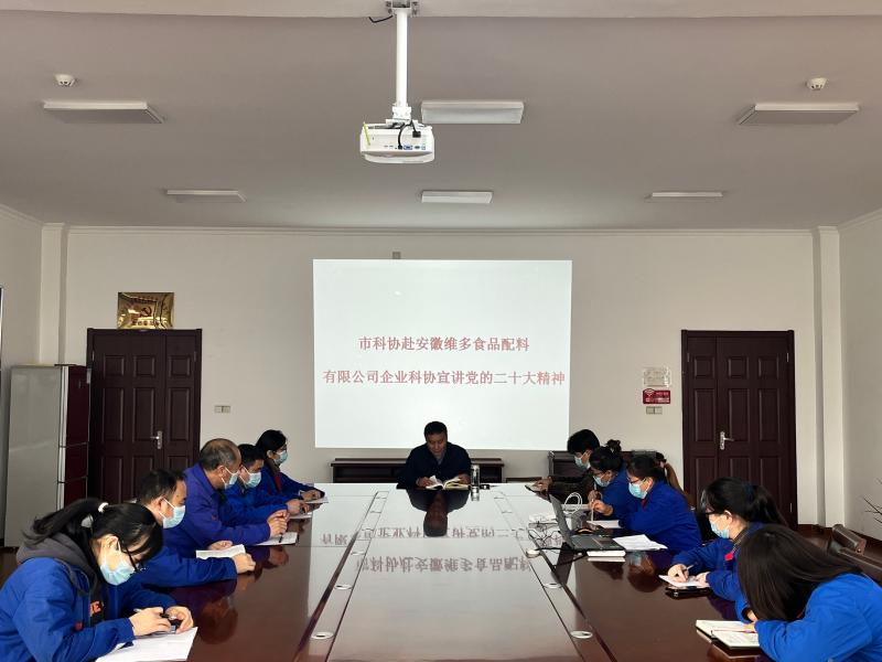 11月16日下午,市科协党组书记、主席朱加文赴安徽维多食品配料有限公司企业科协宣讲党的二十大精神。