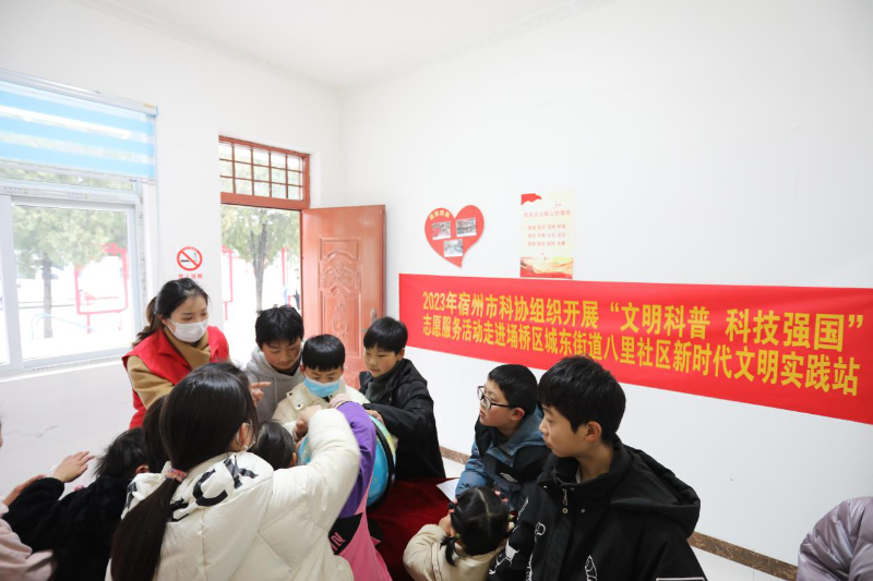 为进一步普及科学知识,弘扬科学精神,提升科学素养,2月18日上午,宿州市志愿服务联合会在城东街道八里社区综合文化服务中心以“邻里集市”为主题开展活动,市科协、市科技馆积极参与,并组织开展以“文明科普 科技强国”为主题的志愿服务科普推广活动。旨在提高广大群众的科学素质、倡导弘扬科学精神、普及科学知识、传播科学思想的良好社会风尚。