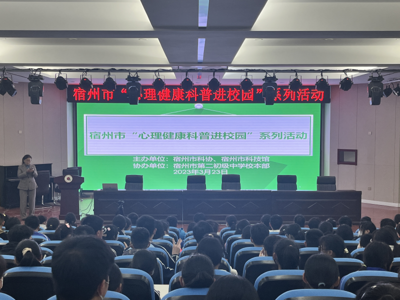 青少年是家庭的希望,也是国家和民族的未来。为进一步促进未成年人心理健康成长和全面发展,营造和谐校园环境,3月23日下午,由宿州市科协、宿州市科技馆主办的“宿州市心理健康科普进校园”系列活动走进宿州市第二初级中学校本部。