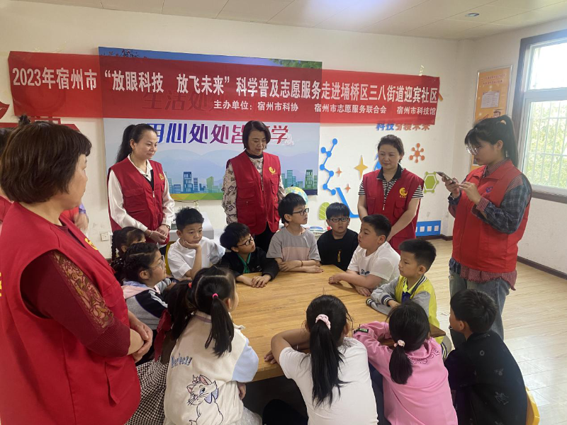 5月13日上午,市科协、市志愿服务联合会、市科技馆在埇桥区三八街道迎宾社区联合开展“放眼科技 放飞未来”科学普及志愿服务活动。