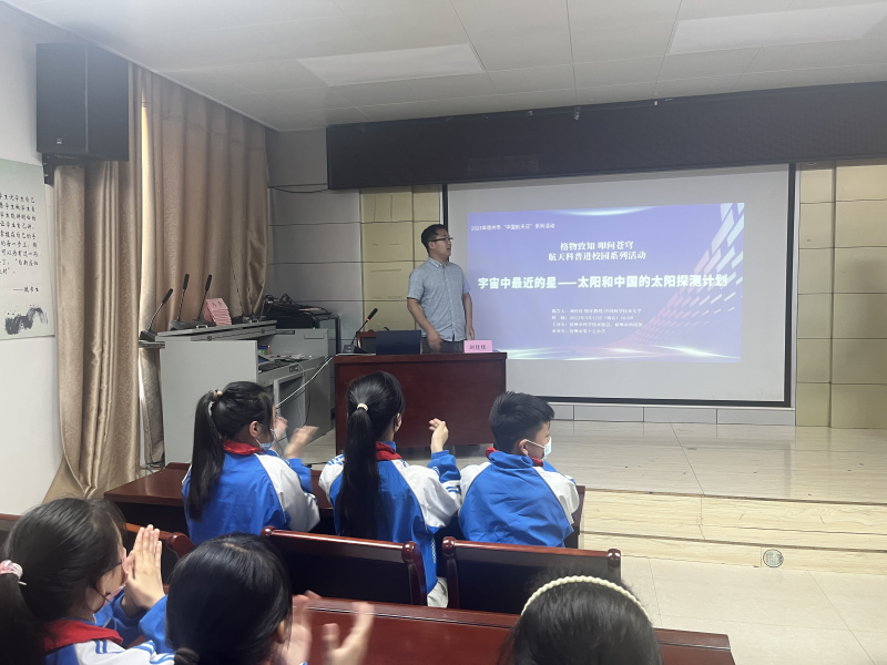5月12日 下午,由宿州市科学技术协会主办、宿州市科技馆承办的2023年宿州市“中国航天日”专题科普系列活动走进宿州第十七小学,邀请中国科学技术大学刘佳佳教授作主题为《宇宙中最近的星—太阳和中国的太阳探测计划》的航天科普报告。200名师生在现场聆听了此次报告。