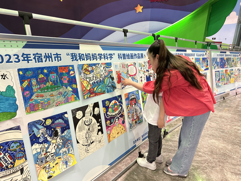 活动自今年4月底启动以来,我市广大青少年和妈妈一起朗读科普内容,绘画主题海报,带着妈妈一起学习科学知识,在社会上形成了爱科学、学科学的良好氛围。本次活动初选出优秀科普视频作品和优秀绘画作品,在宿州市科协微信公众号“科普宿州”进行展播,截止目前,本次活动展播网络总浏览量达15万人次,参与投票网民达8万人次。最终评选出30个“优秀科普视频”和30个“科普绘画作品”。颁奖典礼结束后,在讲解员的带领下,参加颁奖典礼人员有序参观了优秀科普绘画作品。