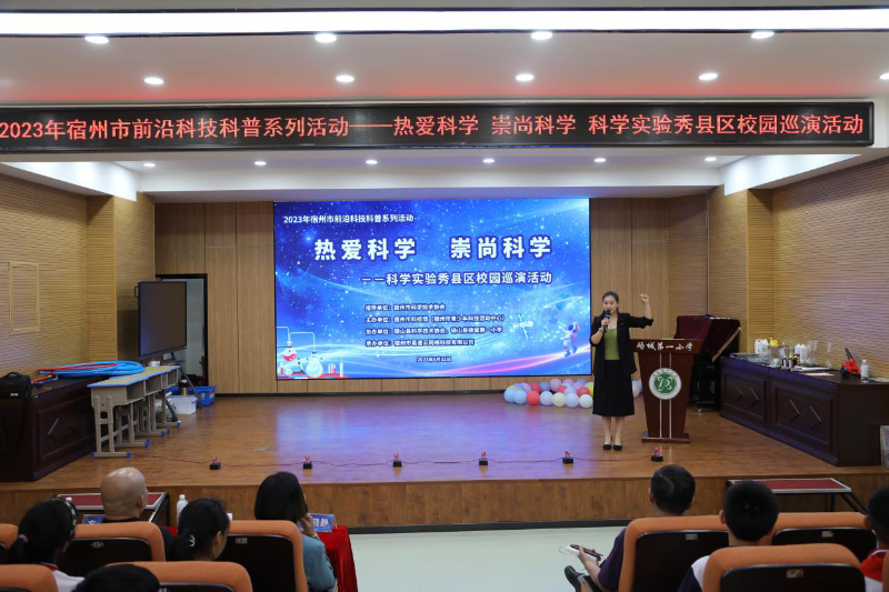 近期由市科协指导、市科技馆主办的2023年宿州市前沿科技系列活动——“热爱科学 崇尚科学”科学实验秀县区校园巡演活动分别在灵璧第一初级中学、萧县实验小学、砀山县砀城第一小学、泗县三中举办。