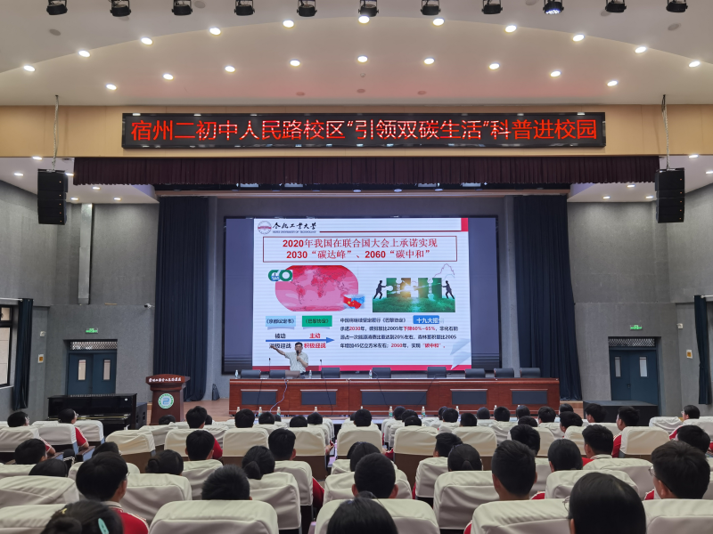 9月8日上午,由宿州市科协、宿州市科技馆主办的2023年“全国科普日”系列活动——“引领双碳生活”科普主题临展在宿州市第二初级中学人民路校区启动。