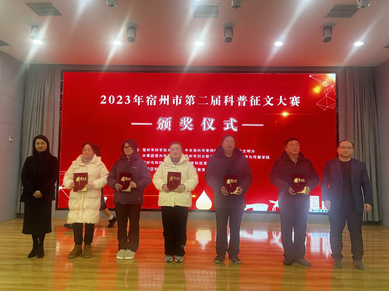 12月27日下午,2023年宿州市第二届科普征文大赛颁奖仪式在宿州学院(东区)举行。此次大赛由市科协、市委网信办、市文明办、团市委、市妇联、宿州学院文学与传媒学院联合主办,市科技馆承办。大赛共评出一等奖2名,二等奖5名,三等奖10名,优秀奖83名,优秀指导老师10名。