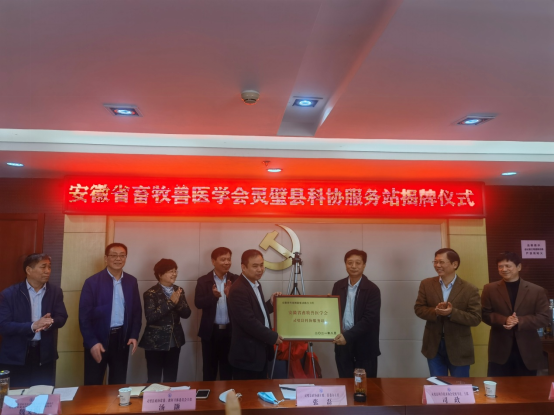 为充分发挥省级学会人才优势和智力优势,推进“科创安徽”建设行动,打造创新驱动助力工程升级版建设,服务宿州地方经济,服务长三角绿色农产品生产加工供应基地建设,11月4日上午,安徽省畜牧兽医学会灵璧县科协服务站揭牌仪式在灵璧县科协会议室举行。