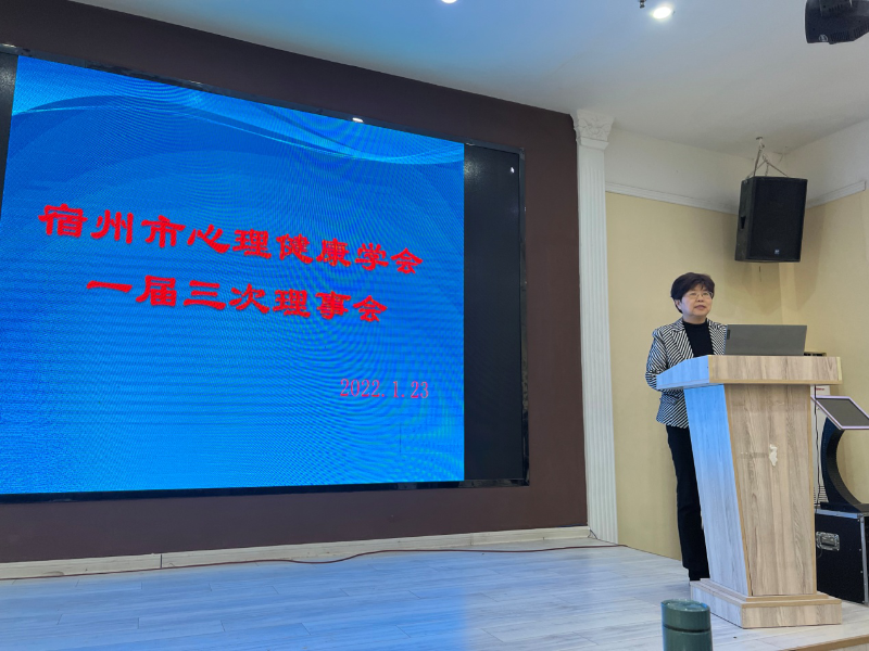 2021年1月23日,宿州市心理健康学会一届三次理事会议在华夏酒店召开,宿州市科学技术协会党组成员、副主席孙洁和学会部负责人、宿州市心理健康学会理事及会员40多人参加了会议。