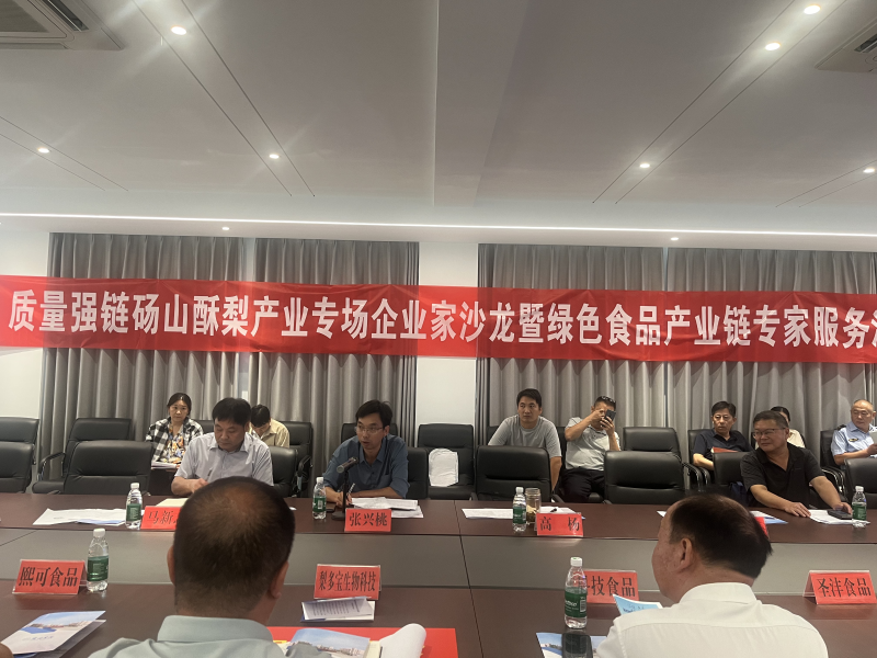 积极开展科技服务。市预制菜学会、市市场监督管理局开展了“质量强链砀山酥梨产业专场企业家沙龙暨绿色食品产业链专家服务活动”,张兴桃教授团队分两组到安徽食品科技有限公司等5家食品企业进行了技术指导和食品安全科普宣传;学会理事长宿州学院刘小阳教授在沙龙上为与会的企业家和市场监管人员作了《食品伦理、法规和标准》科普讲座,均得到了企业家和主办方的好评。