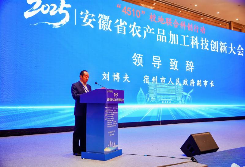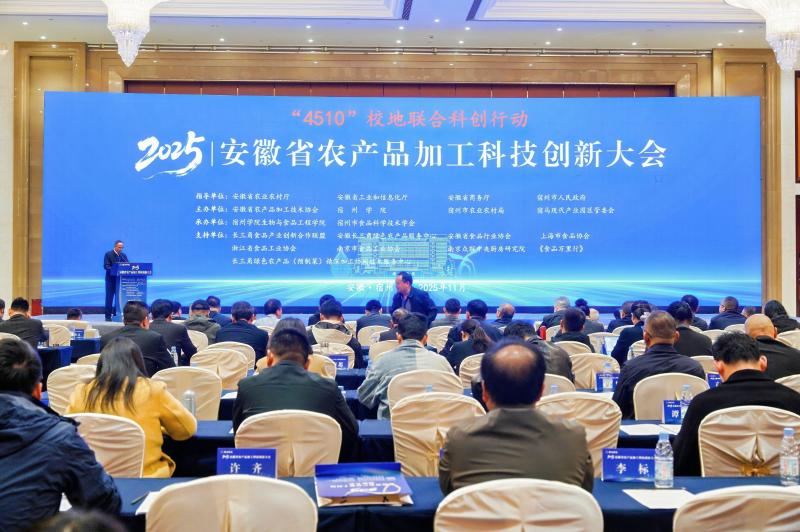 11月14日,2025安徽省农产品加工科技创新大会在宿州市成功召开。本次大会由安徽省农产品加工技术协会、宿州学院、宿州市农业农村局等联合主办,宿州学院生物与食品工程学院、宿州市食品科学技术学会具体承办。长三角高校及企业专家200余人参会。宿州市副市长刘博夫、省农业农村厅等领导出席。